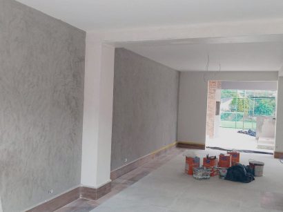 Pintura de tetos e paredes salão gourmet com aplicação de efeito mármore em paredes decorativas.
