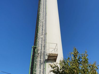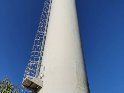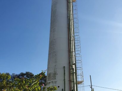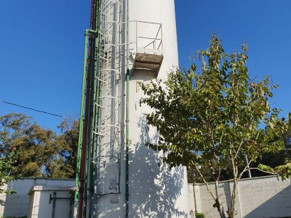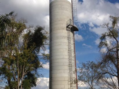Lavagem de castelo d’água com pintura da logo.