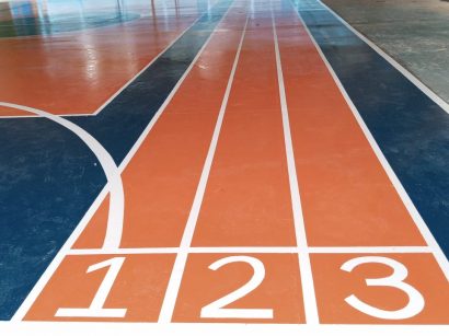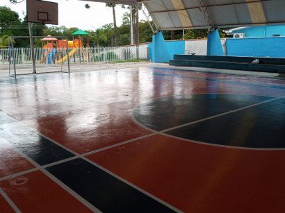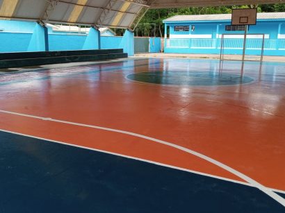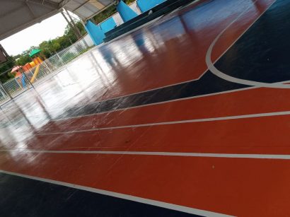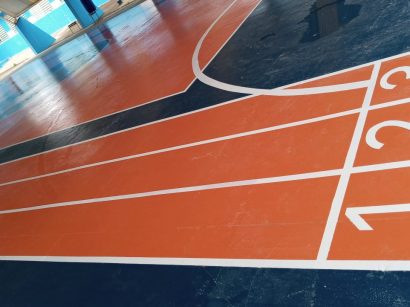 Pintura e acabamento de quadra poliesportiva , incluindo faixas e os números.