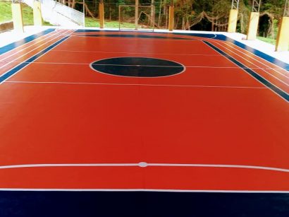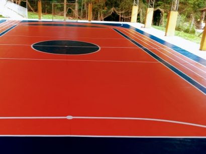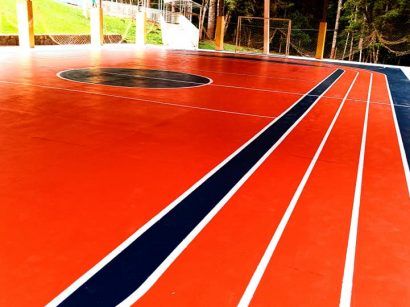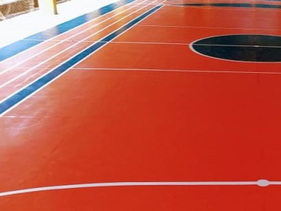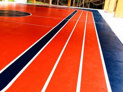 Pintura e acabamento de quadra poliesportiva , incluindo faixas e os números.
