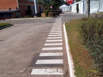 Pintura de faixas de pedestres. Mais segurança para seus colaboradores e visitantes.